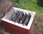 tynt lag med sagflis over (for å dempe evt. flammer).