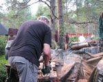 Produksjon av røkspon v/hjelp av el.høvel. Her brukes gråor - helst svartor